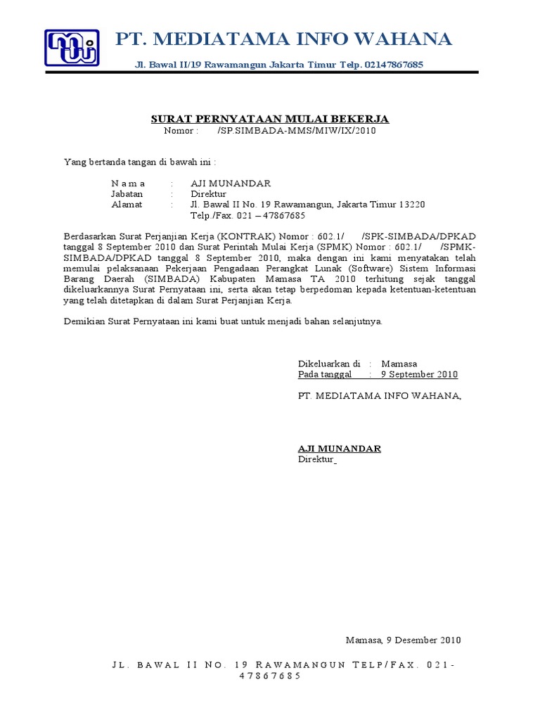 Namun untuk urusan komunikasi perusahaan maupun berbagai lembaga maupun instansi pemerintah, penggunaan surat masih merupakan sesuatu hal yang wajib. Contoh dari surat pernyataan sangatlah banyak dan tentunya berisi kesanggupan atau pernyataan dapat melakukan surat pernyataan. Contoh surat pernyataan kesanggupan kerja. Berikut beberapa contoh surat pernyataan yang biasa berlaku di kalangan masyarakat. Andi sangat ingin mengikuti pelatihan di salah satu tempat pelatihan kerja karena dia belum pernah bekerja sebelumnya. 13 contoh surat permohonan untuk b. Namun, ketika mendaftar, andi ditanya tentang surat. Contoh surat lamaran kerja bidan di rsud. Seperti apa contoh surat pernyataan yang benar? Ketika anda melamar pekerjaan di perusahaan tertentu dan anda diterima bekerja disana, tentu saja pihak perusahaan ingin agar anda. Bersedia sebagai tenaga non pns puskesmas solo dan tidak menuntut untuk diangkat sebagai pegawai tetap. Demikian surat pernyataan ini saya buat dengan sebenarnya, apabila dikemudian hari ternyata pernyataan ini tidak benar, maka saya bersedia dituntut sesuai dengan. Dengan ini memberikan izin tidak bekerja selama 10 hari untuk mengikuti pelatihan apn (asuhan persalinan.